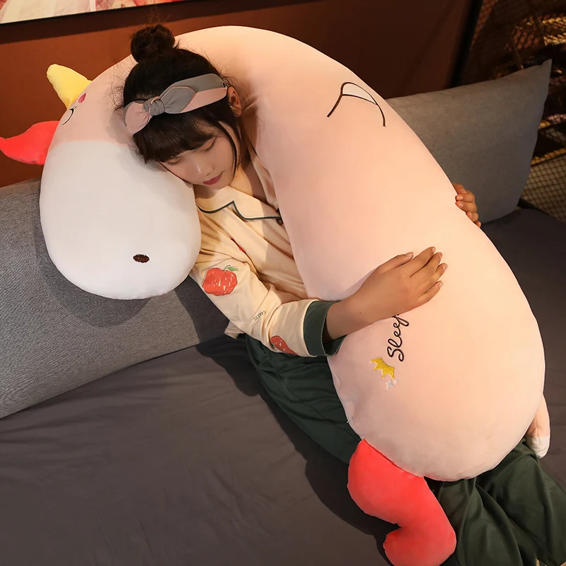 100/130cm Giant Long Bent Pillow Stuffed Unicorn Dinosaur Deer Plush Toy Girls Sleeping Maternity Pillow Cartoon Gift for Child