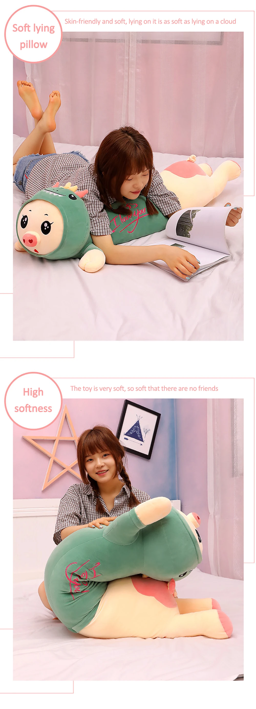 110cm Sausage Pig Plush Toys Long Stuffed Animals Kawaii Plushie Soft Dolls Sleep Pillow Baby Companion Birthday Gifts For Kids