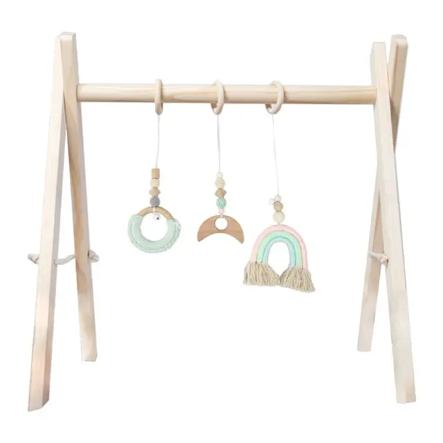 1Set Nordic Cartoon Baby Wooden Gym Fitness Frame Rack Hanging Pendant Toys Kit Toddler Infant Room Decorations