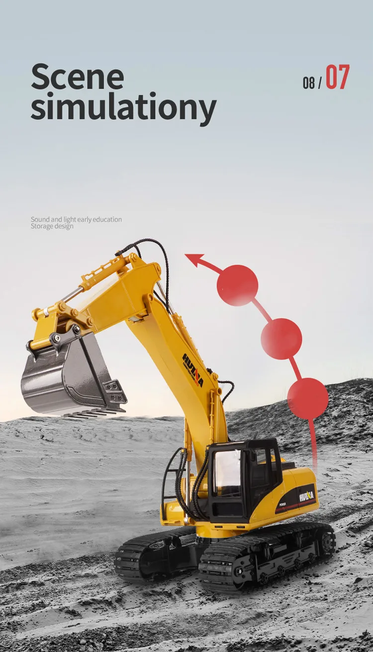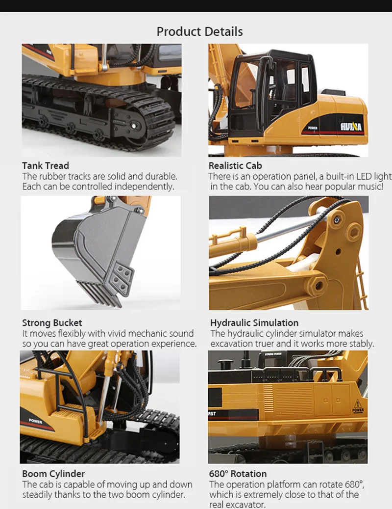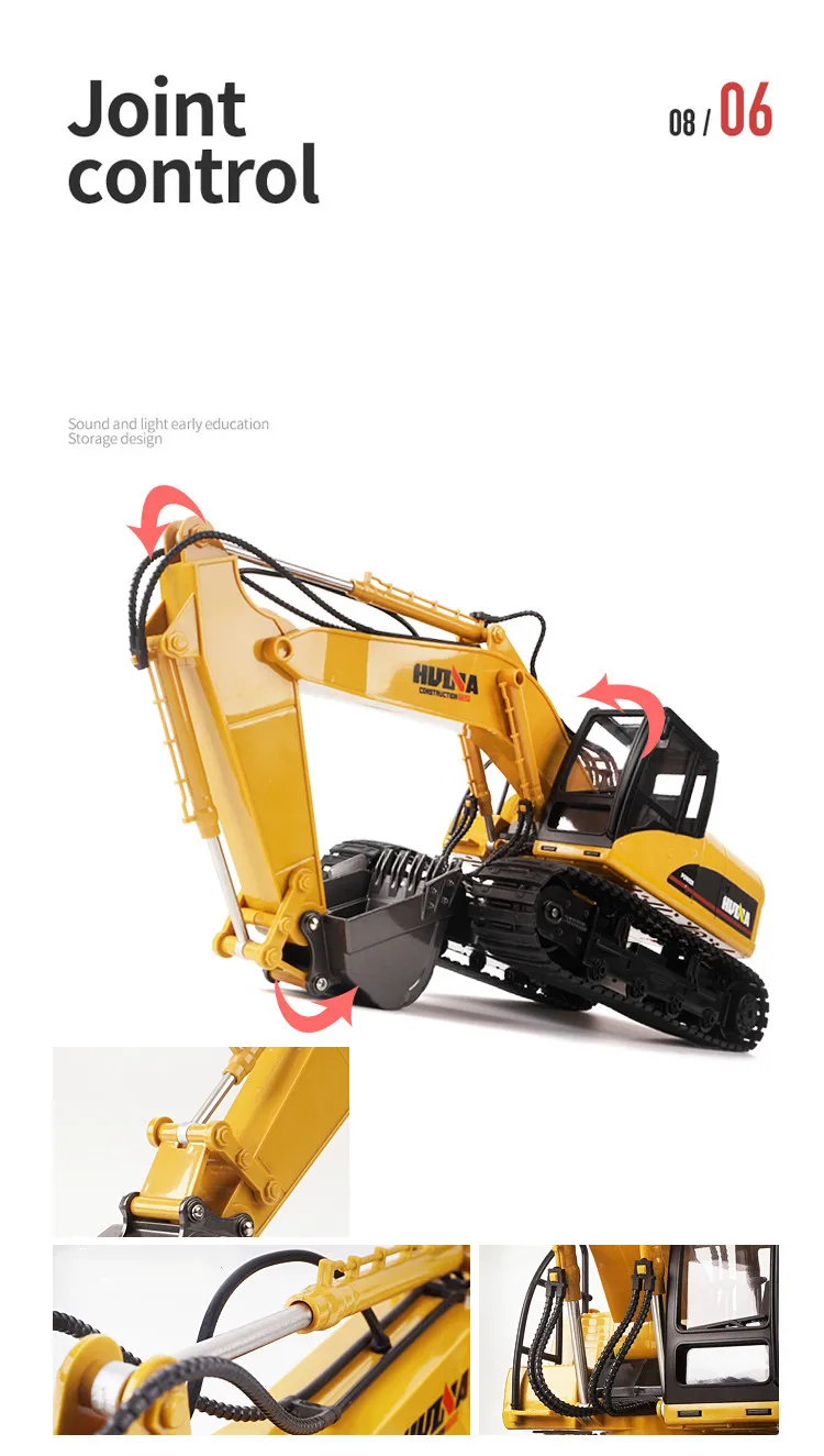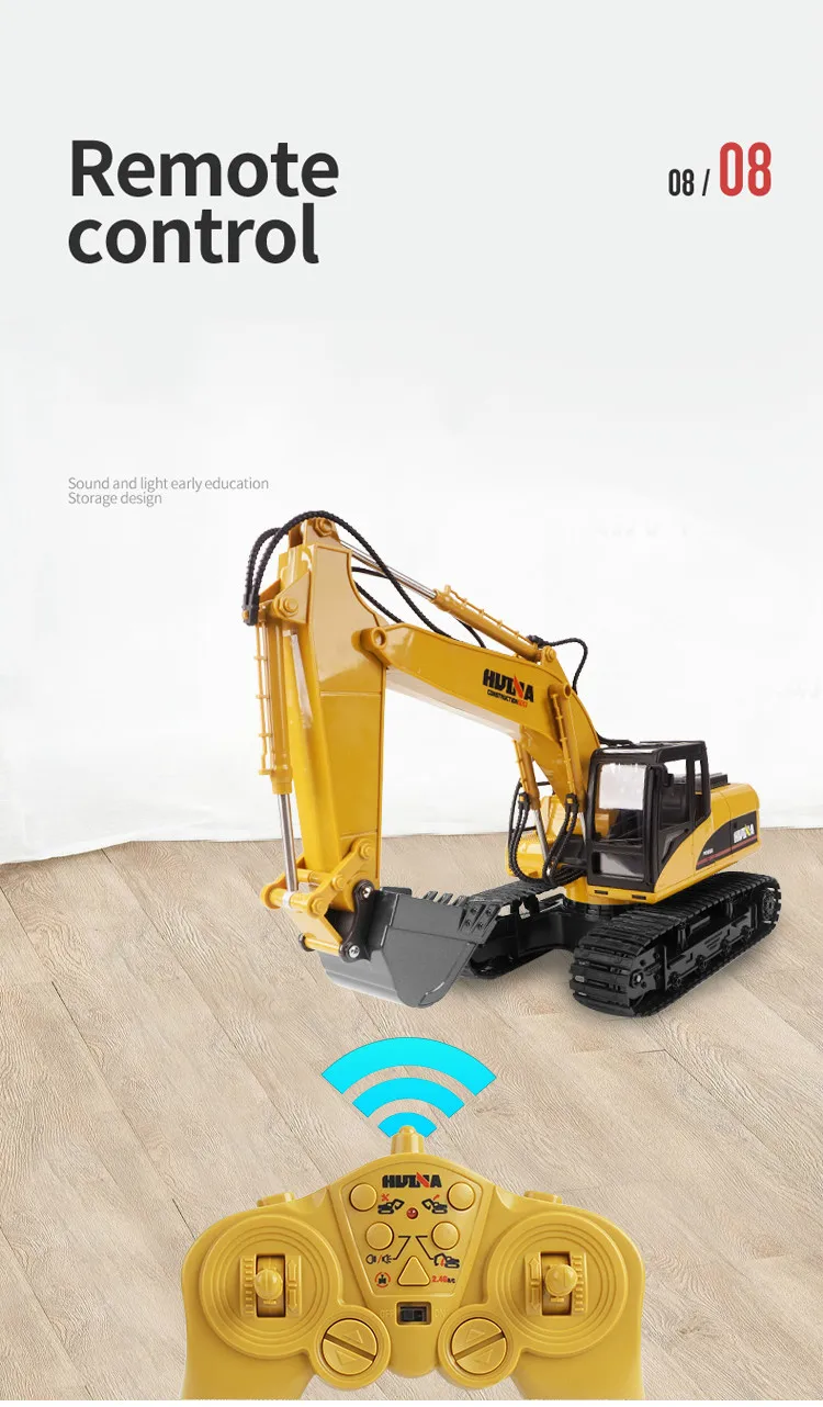 2020 Toys 15 Channel 2.4G 1/14 RC Excavator Charging RC Car With Battery RC Alloy Excavator RTR For kids