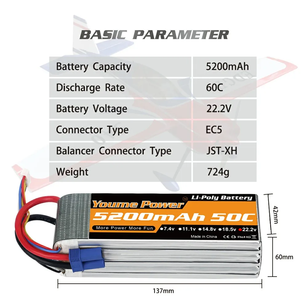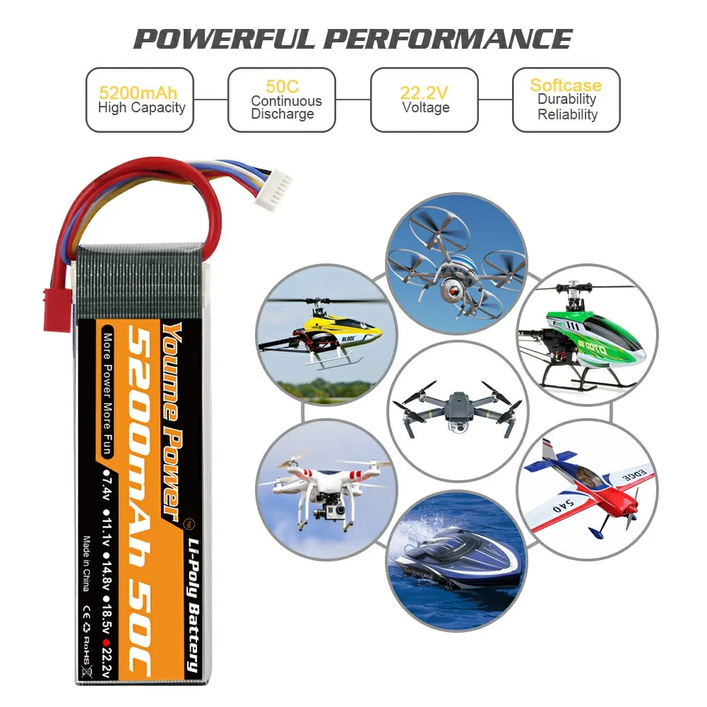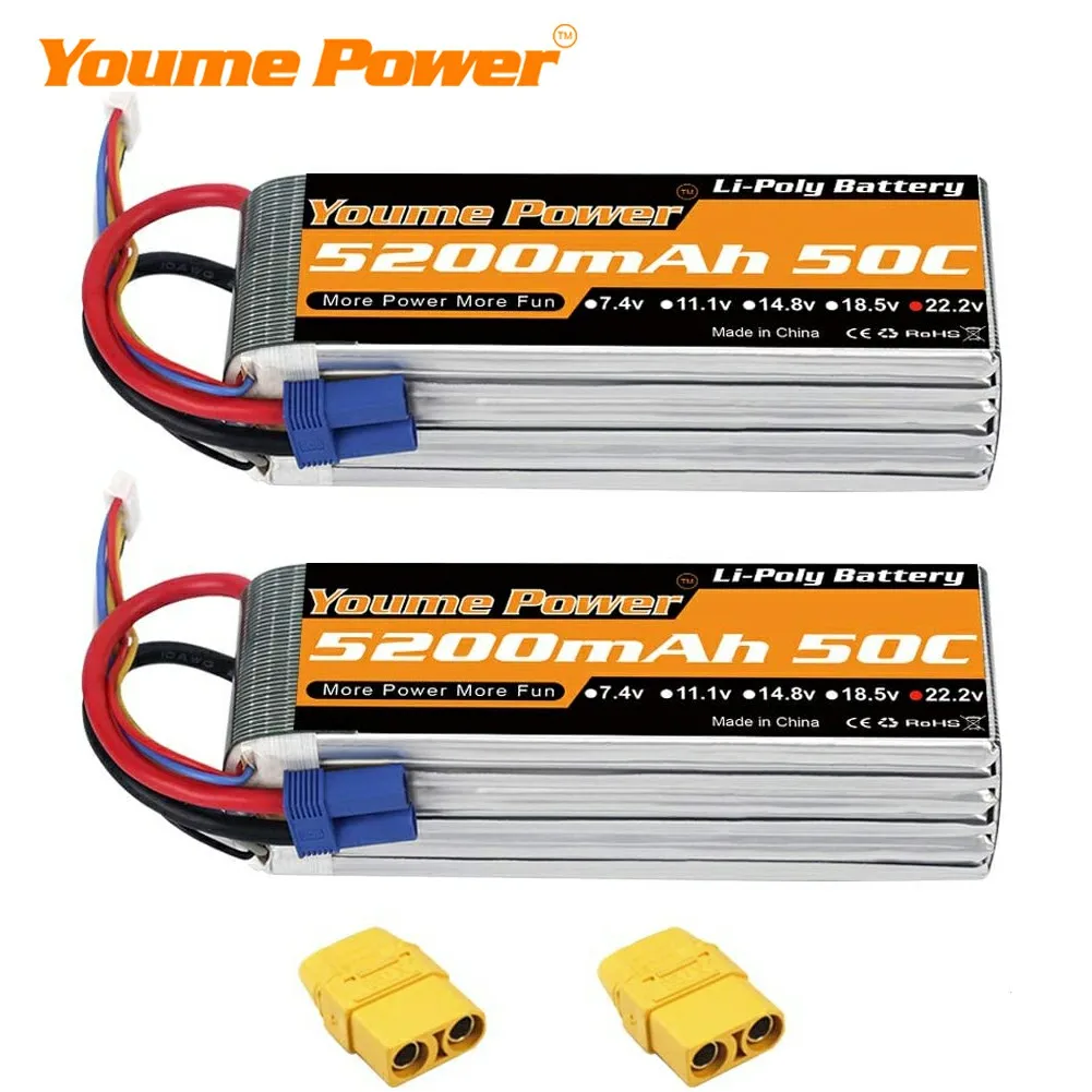 2PCS Youme 6S 22.2V Lipo Battery 5200mah 50C XT60 EC5 XT90 T Deans For DJI Align T-REX 550 600 RC Heli Quadcopter Airplanes Car