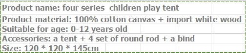 3 – 7 toy teepee child 100% cotton canvas tent children play house doll house