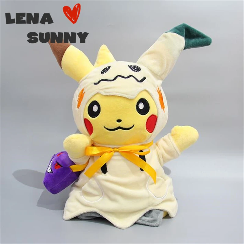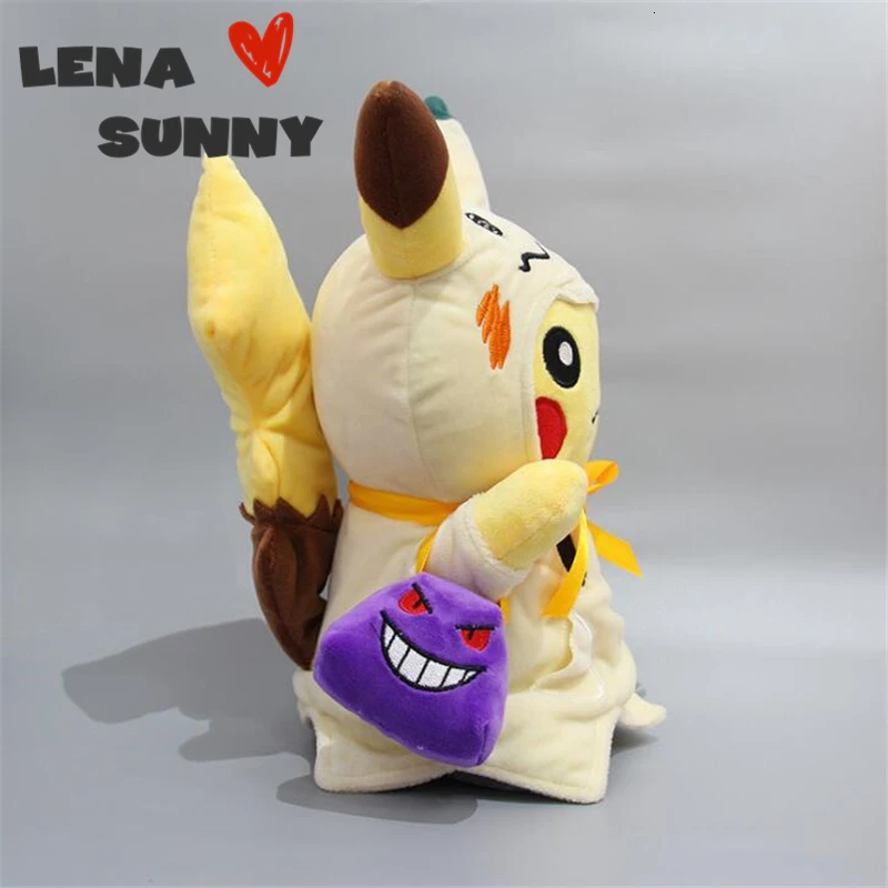 30cm Anime Pocket Animal Pikachu Plush Toy Cosplay Mimikyu Q With Genger Bag Stuffed Plush Dolls Pikachu New Year Toy Kids Gift