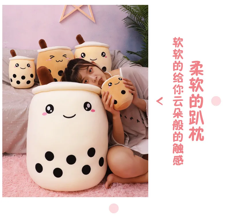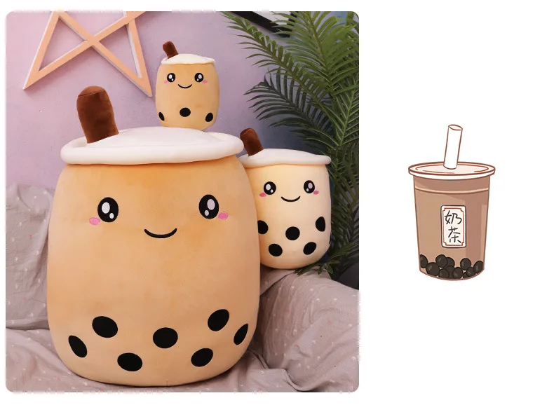 35-50cm Real-life Bubble Tea Plush Toy Stuffed Food Milk Tea Soft Doll Boba Fruit Tea Cup Pillow Cushion Kids Toys Birthday Gift