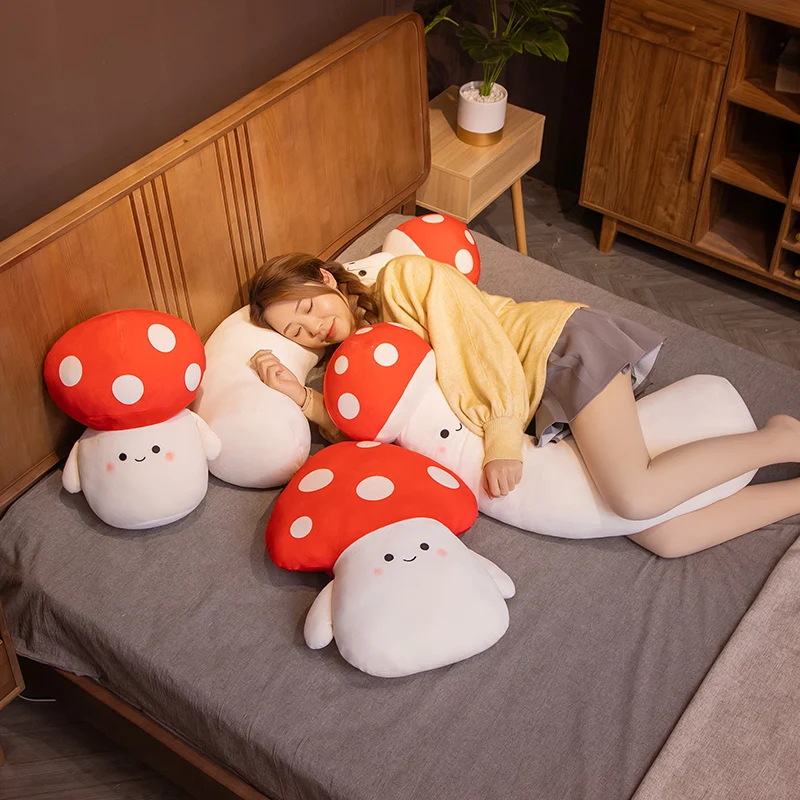 35-90cm Cute Mushroom Hand Warmer Plush Toys Stuffed Soft Cartoon Plants Doll Creative Long Pillow For Kids Girls Gifts Decor
