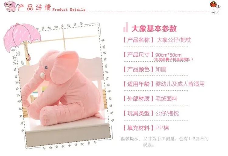 40cm/60cm Height Large Plush Elephant Doll Toy Kids Sleeping Back Cushion Cute Stuffed Elephant Baby Accompany Doll Xmas Gift