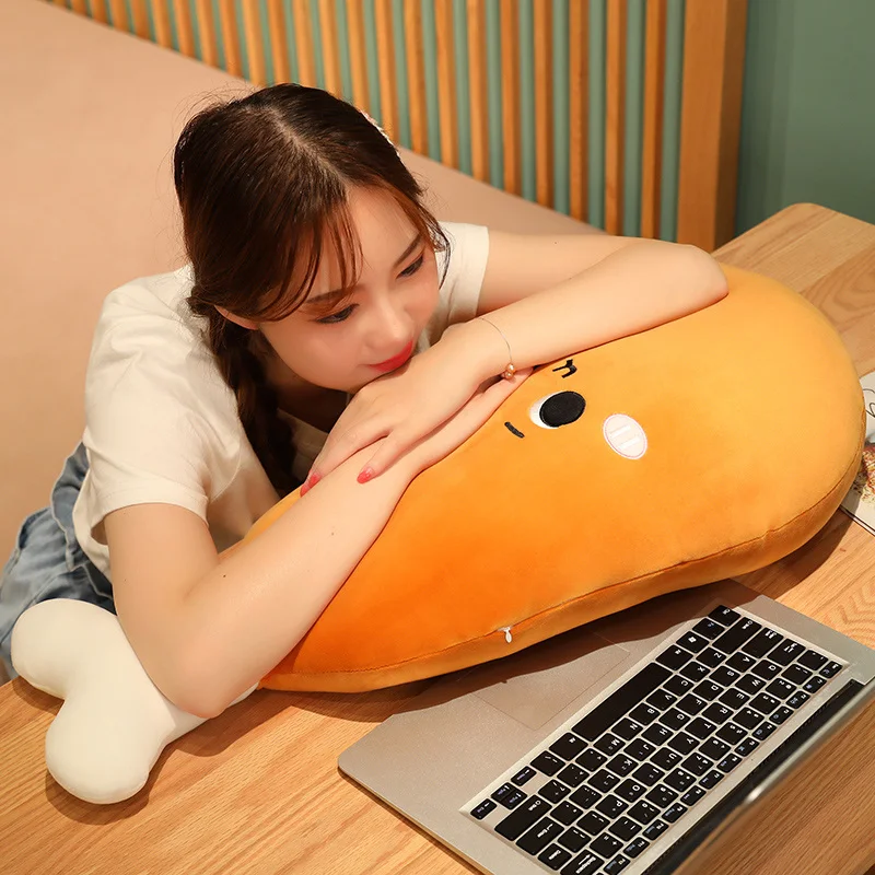 50~100cm Stuffed Drumstick Food Plushie Brown Blinking Round&Closed Eyes Emotional Cute Cartoon Toy Backrest Snuggle Pillow Gift