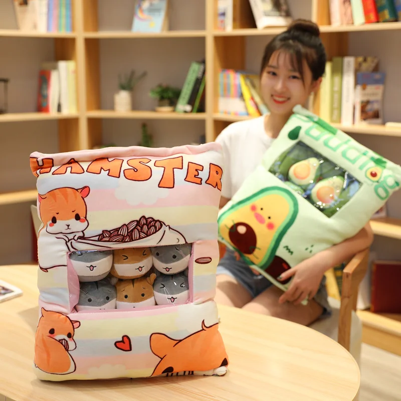 50cm Plushie Bag Pudding Toys Mini Animals Doll Sakura Bunny Hamster Penguin Avocado Strawberr Soft Plush Cushion Kid Girl Gift