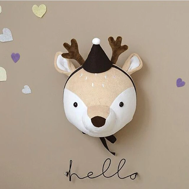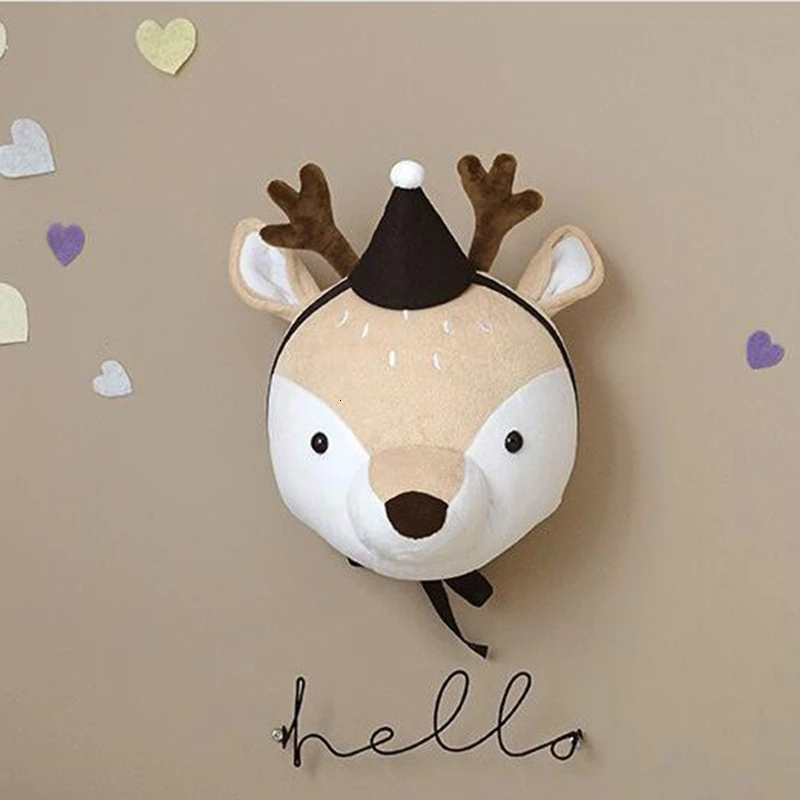 Animal Head Dinosaur Wall Decor Elephant Deer Hanging Mount Stuffed Animal Plush Toy Princess Doll Girl Kid Gift Nursery Room