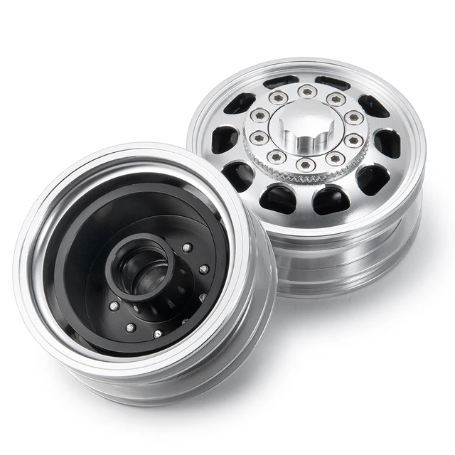 AXSPEED 2 Pcs CNC Metal Alloy Front Wheel Hub Rims for Tamiya 1/14 RC Tow Trailer Tractor Truck Man R620 Upgrade Parts