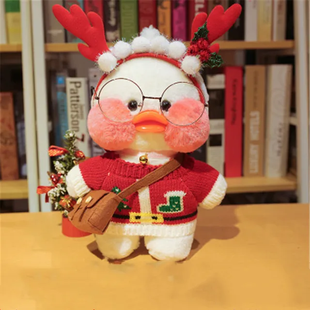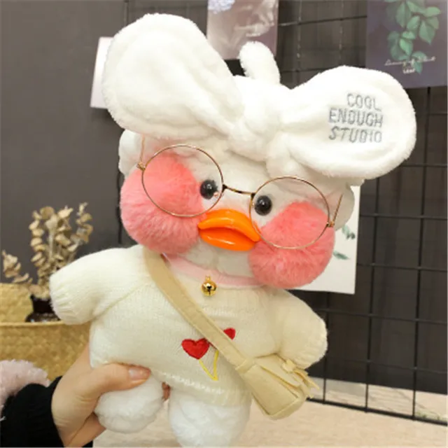 Cafe Duck 30cm Little Yellow Duck Cute Pillow Plush Toy Stuffed Doll Wearing Glasses and Clothes Cartoon Cute Toy