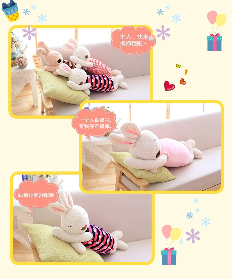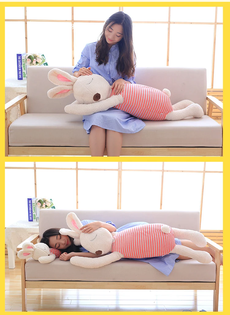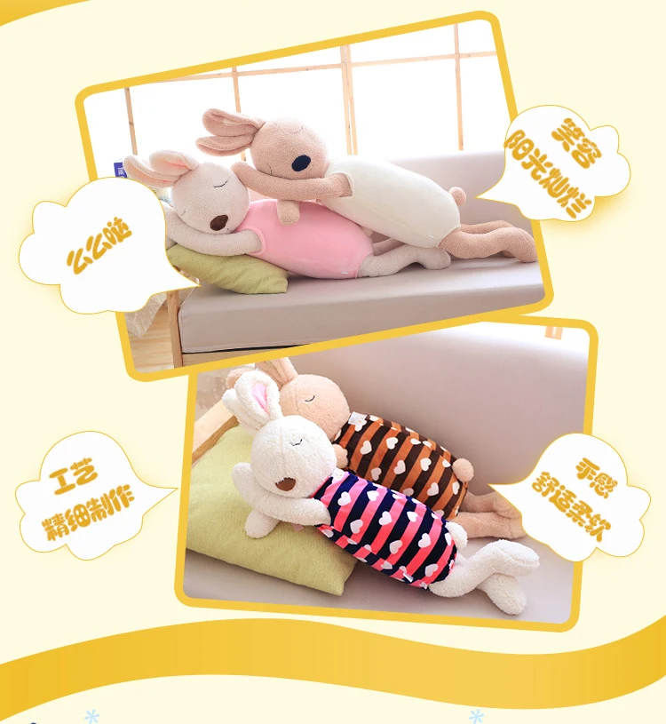 Cute Rabbit Plush Pillows Soft Bunny Stuffed Animals Doll Soft Comfort Sleeping Appease Lying Rabbit Pillow Toys for Girl Gifts