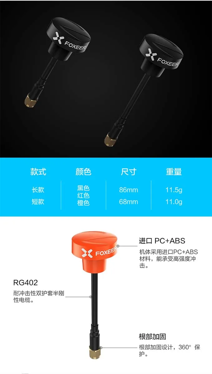 FOXEER Pagoda Pro 5.8GHz RHCP Omni-Directional Circularly Polarized Antenna like lumenier for Fpv drone fatshark Goggle Glasses