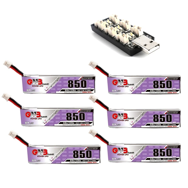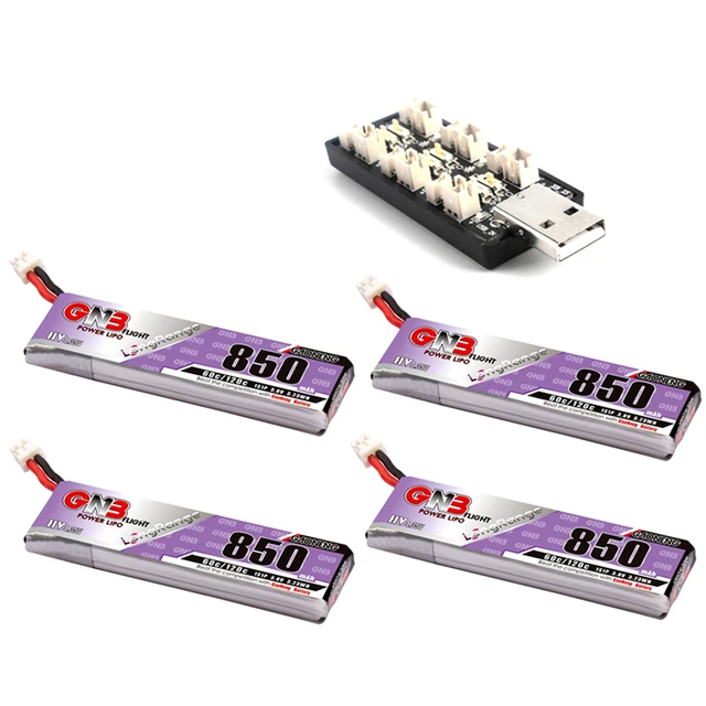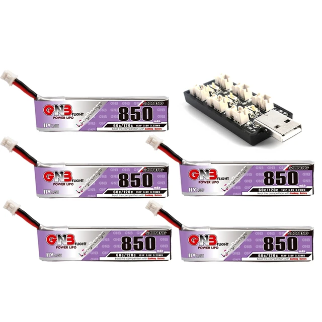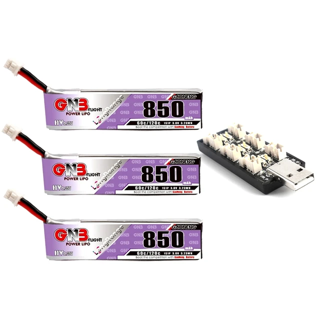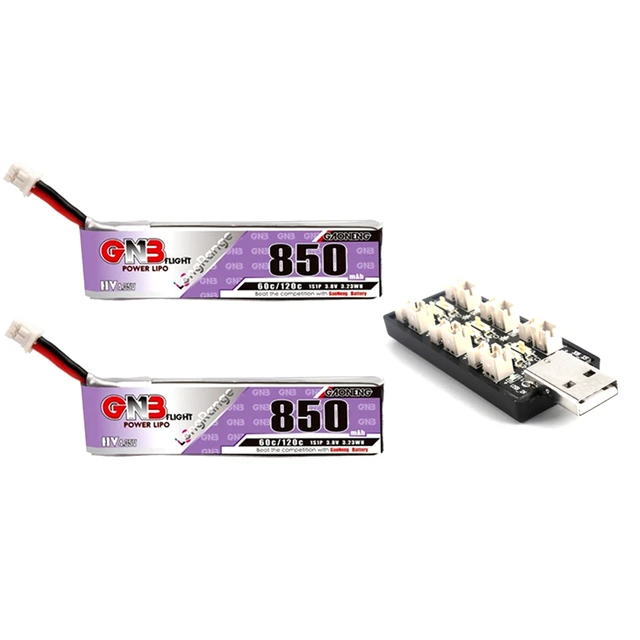GAONENG GNB 1S 850mAh 3.8V 60C/120C HV 4.35V Light Weight Long Fly Times Lipo Battery Charger Set with PH2.0 Plug For FPV Drone