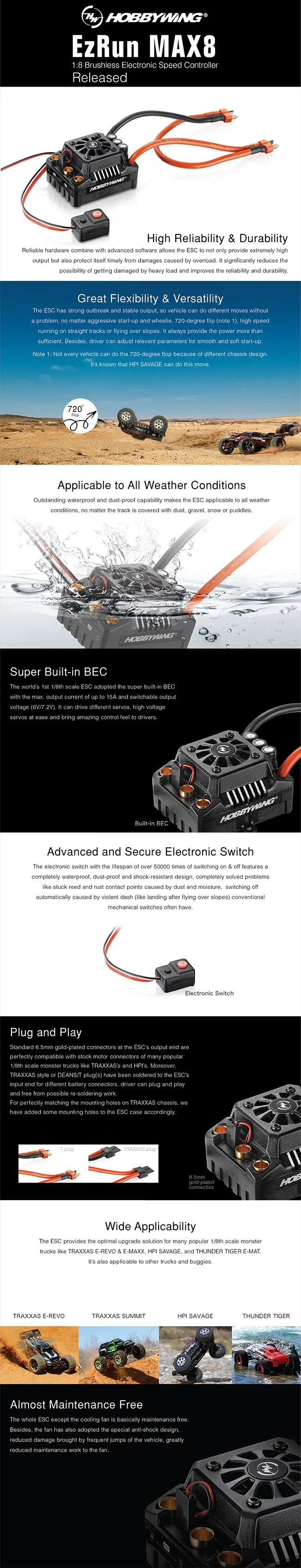 HOBBYWING EZRUN MAX8 RC Model Brushless Motor waterproof 150A ESC Speed Controller TRX plug+program card