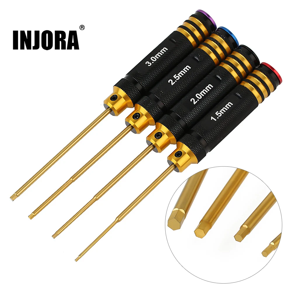INJORA Metal 1.5/2/2.5/3mm Hexagon Screwdriver Screw Driver Tool Kit for Axial SCX10 Traxxas TRX-4 Tamiya RC Car Parts