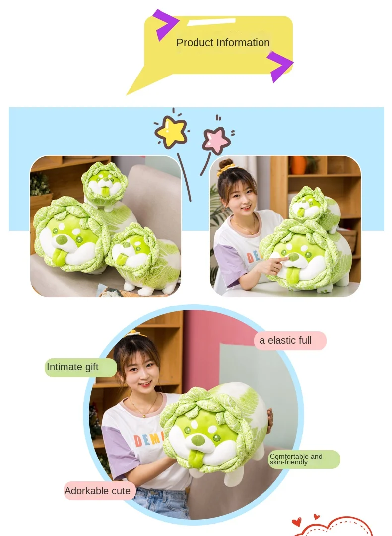 Lovely cabbage plush toy cartoon animation dog doll decoration Plush filling pillow girl sleeping pillow cushion holiday gift