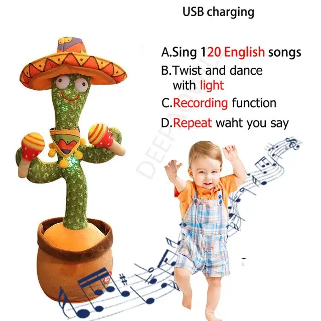 New Electronic Dancing Cactus Plush Toys Singing Decoration Gift Kids Funny Early Education Knitted Fabric Plush Stuffed Toys