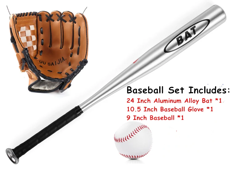 Outdoor Games Kids Sport Toys Baseball Set with Carrying Bag Aluminum Alloy Wood Bat, PU Leather Glove, 9” Soft Baseball Toy