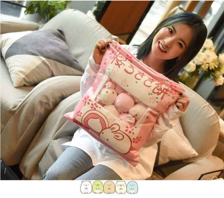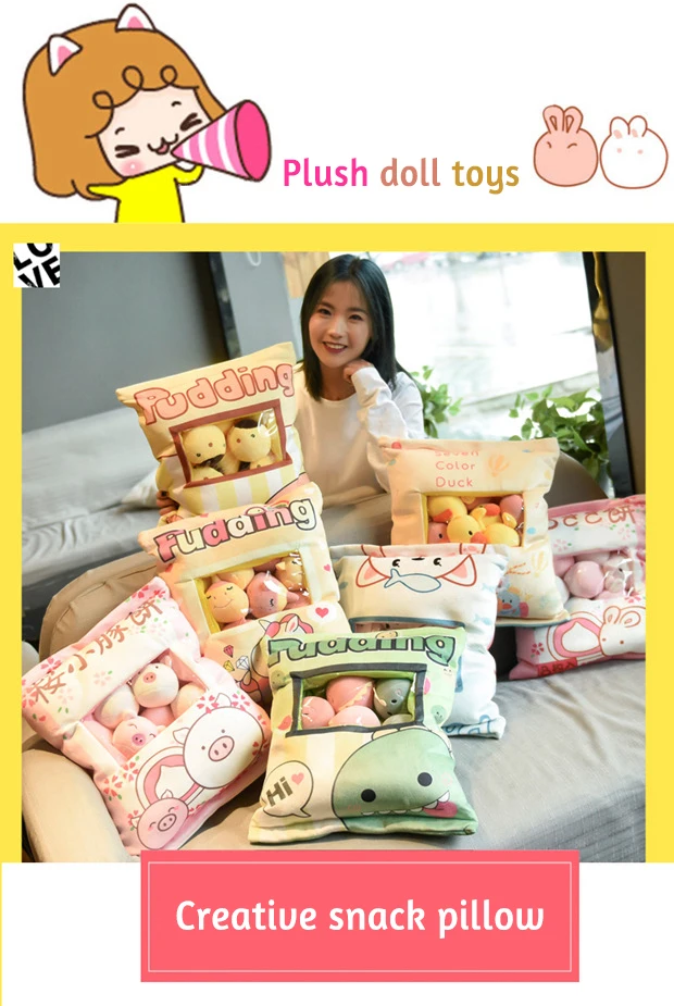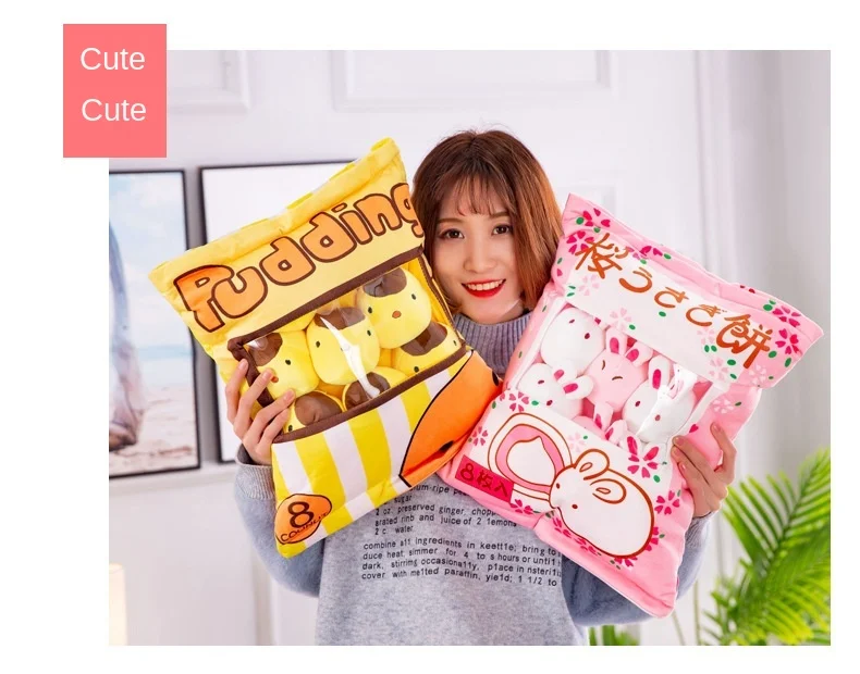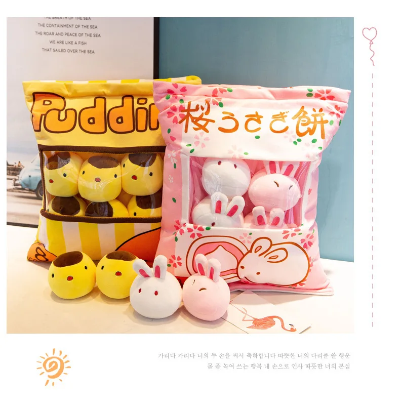 Plushies Bag Pudding Toys Stuffed Mini Plush Animals Dolls Pillow Kawaii Anima Cute Bunny Bear Dog Cat Pig Cushion Girls Gift