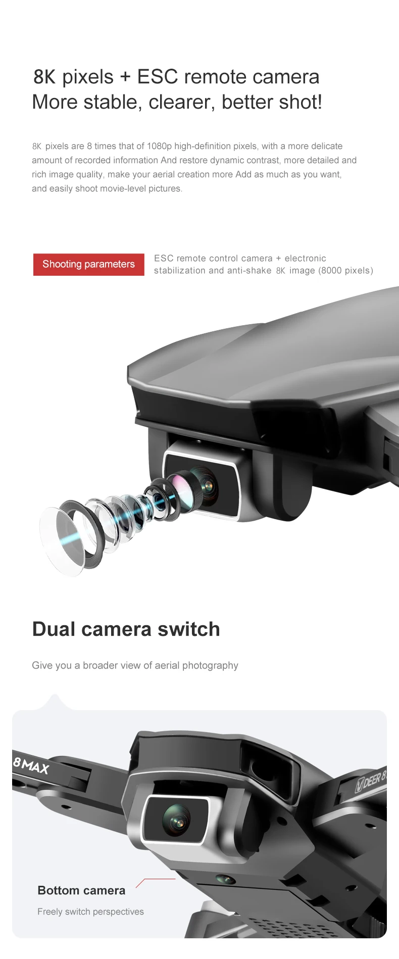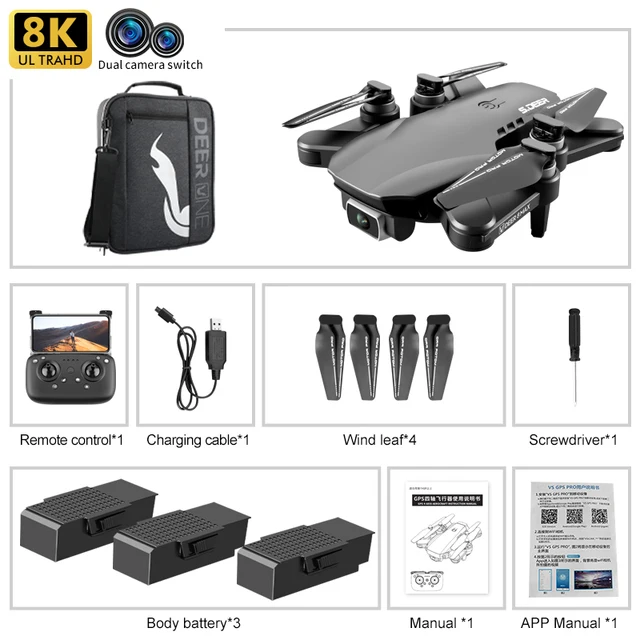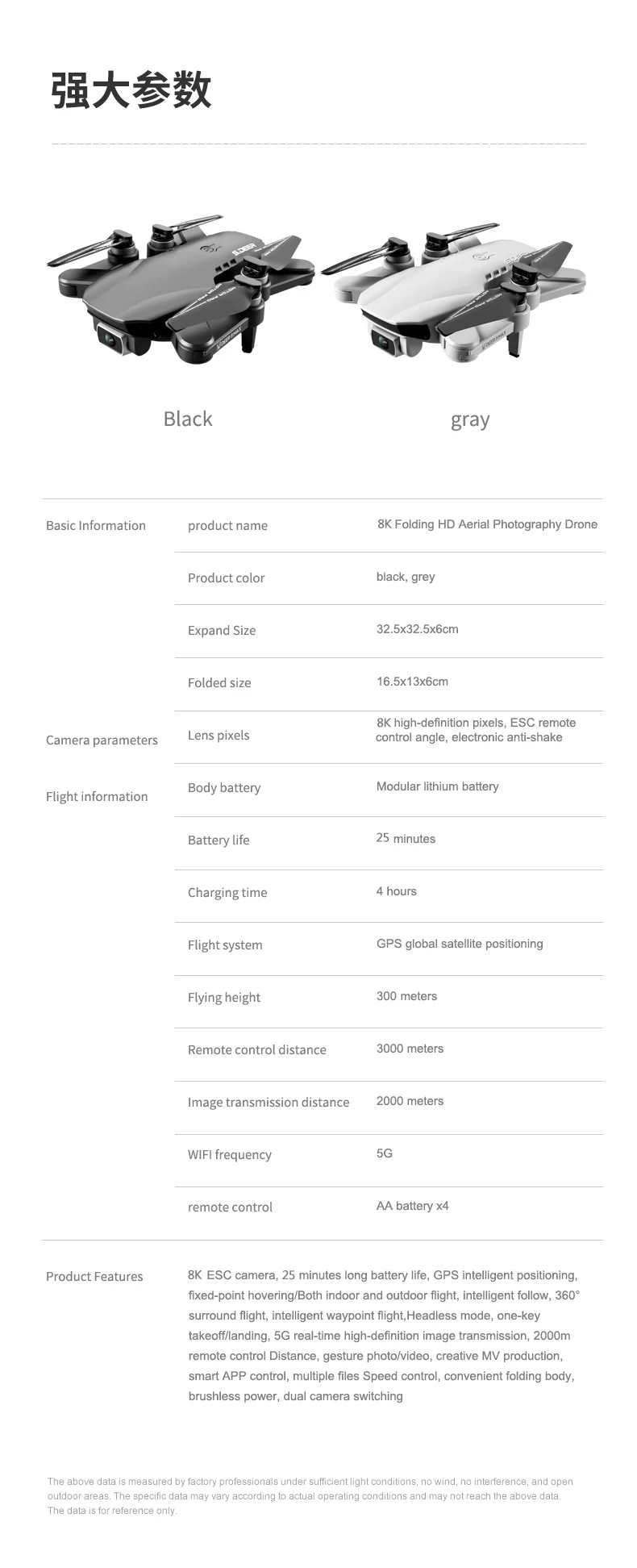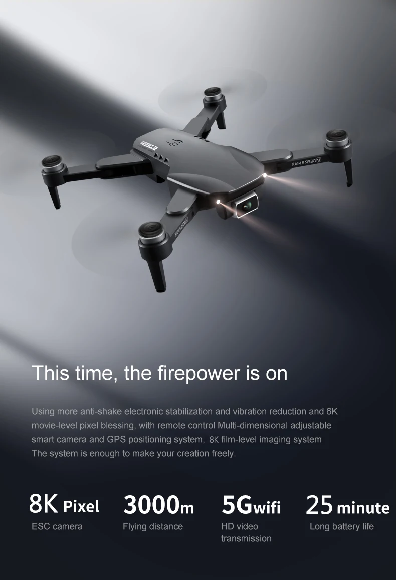 Professional Drone With 8K Dual HD Camera 5G GPS Brushless Motor Foldable Quadcopter Distance 3KM Rc Helicopter With 3pc Battery