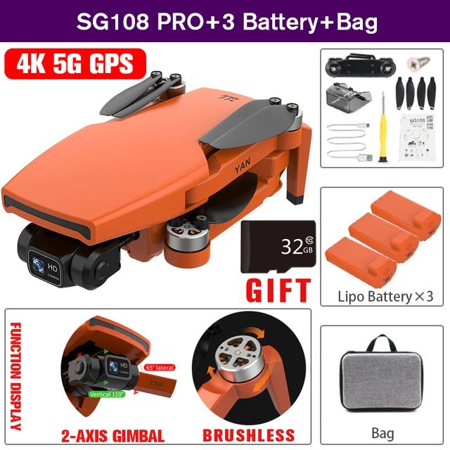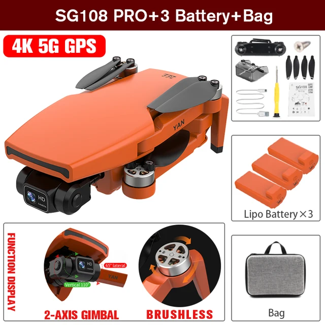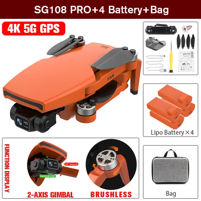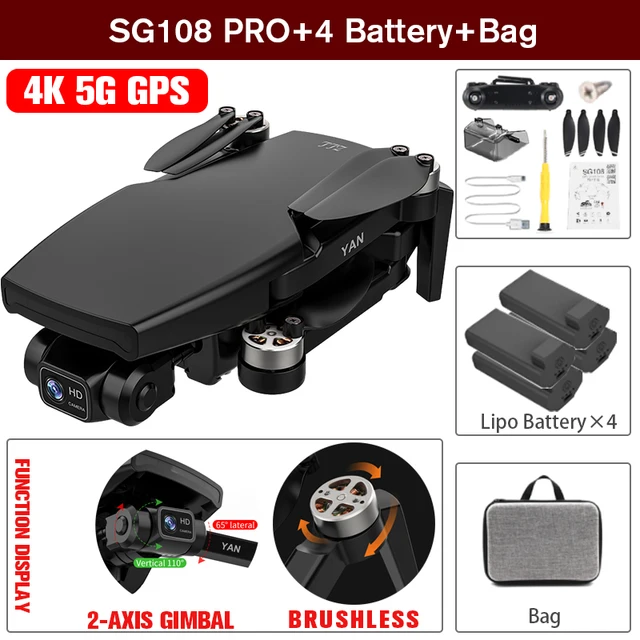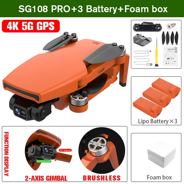 SG108 Pro 2021 GPS 4k Drone 2 Axis Gimbal Professional Camera 5G WIFI FPV Dron 1KM Distance Brushless Motor Rc Quadcopter PK S3
