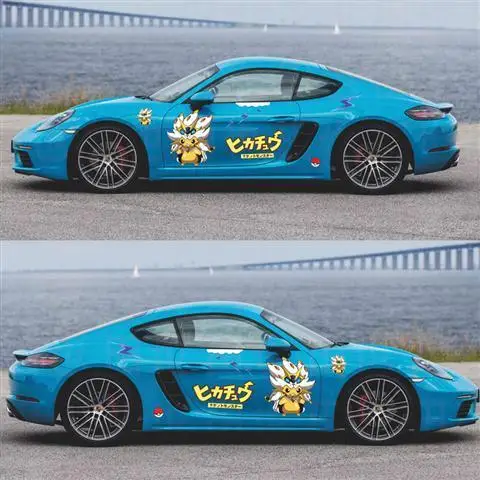 TAKARA TOMY Pokemon Pikachu Car Sticker Cute Cartoon Body Personality Creative Scratch Blocking Floating Car Sticker