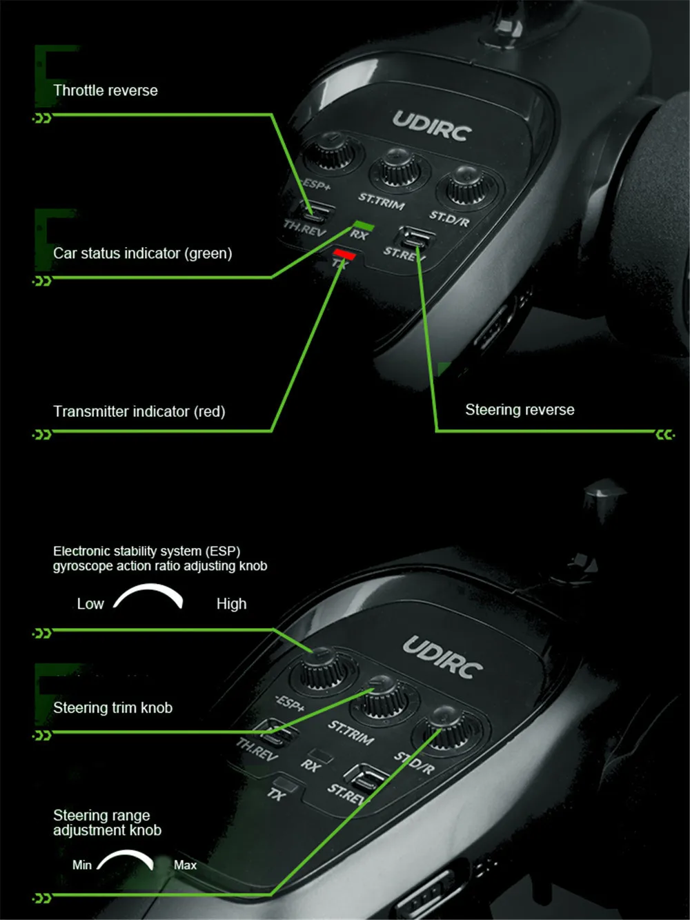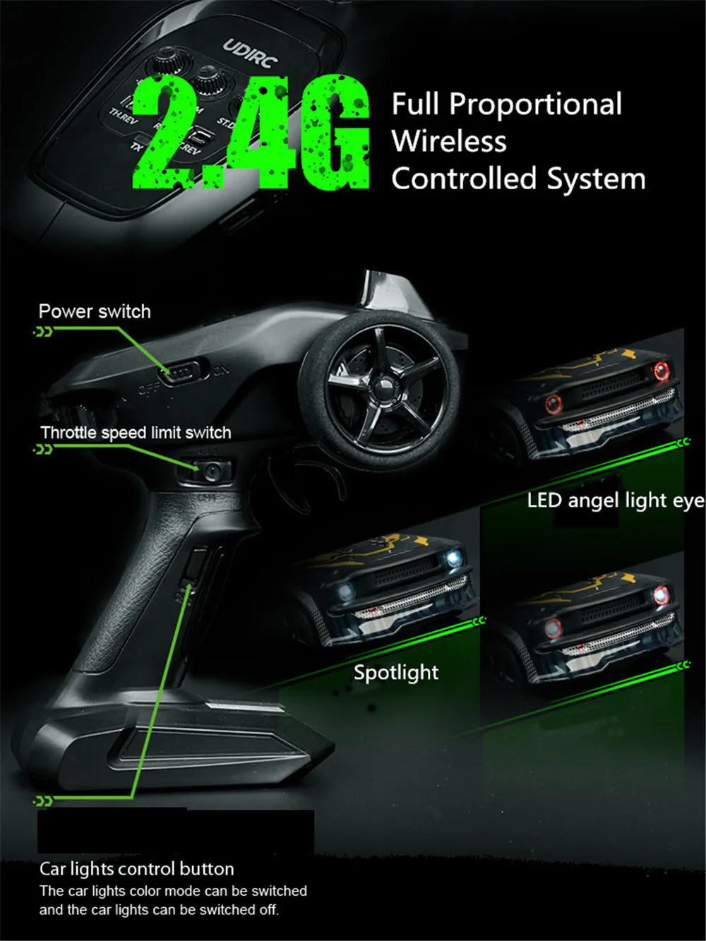 UDIRC 1602 RTR Brushed and Brushless 1/16 2.4G 4WD RC Car LED Light Drift Proportional Off Road Vehicles Model Toy Gift Kid