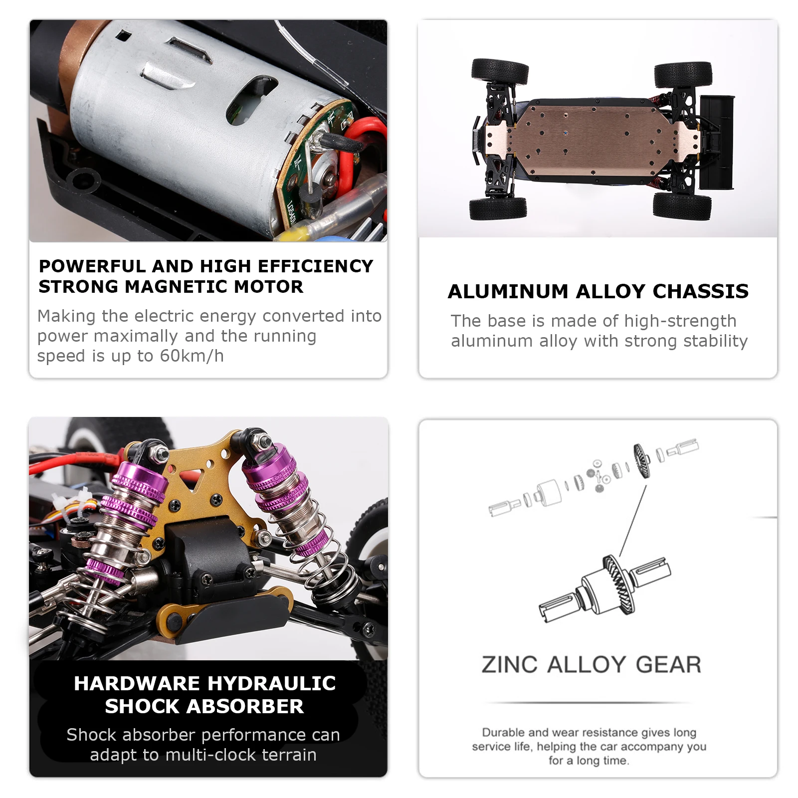 Wltoys 124019 1/12 2.4GHz RC Car 55km/h High Speed Racing Car Aluminum Alloy Chassis Zinc Alloy Gear Off-Road Drift Car RTR
