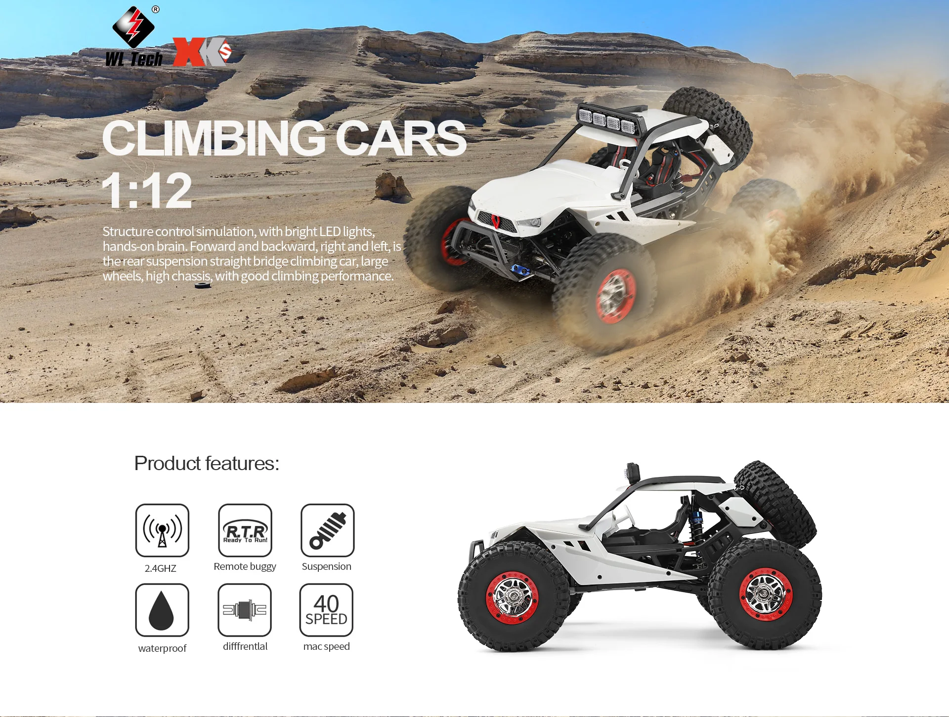 Wltoys 12402a 12428 12429 1:12 RC Car 50KM/H 4WD Electric High Speed Car Off-Road Drift Remote Control Children Toy 12402-A