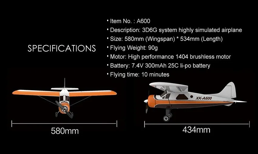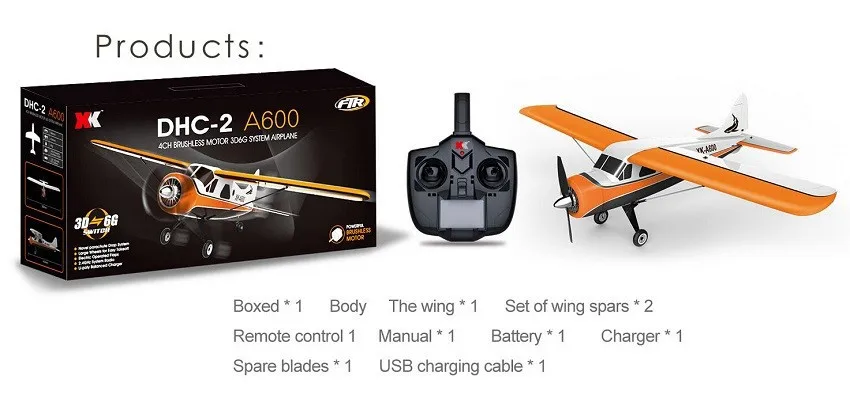 XK A600 4CH 3D6G System Brushless RC Airplane RTF 2.4GHz XK DHC-2 A600 RC Fighter Compatible Futaba
