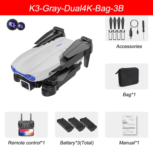 XKJ Mini RC Drone 4K Profesional FPV Foldable Quadcopter Wide Angle Hd Dual Camera Wifi Real-Time Transmission Helicopter Toys