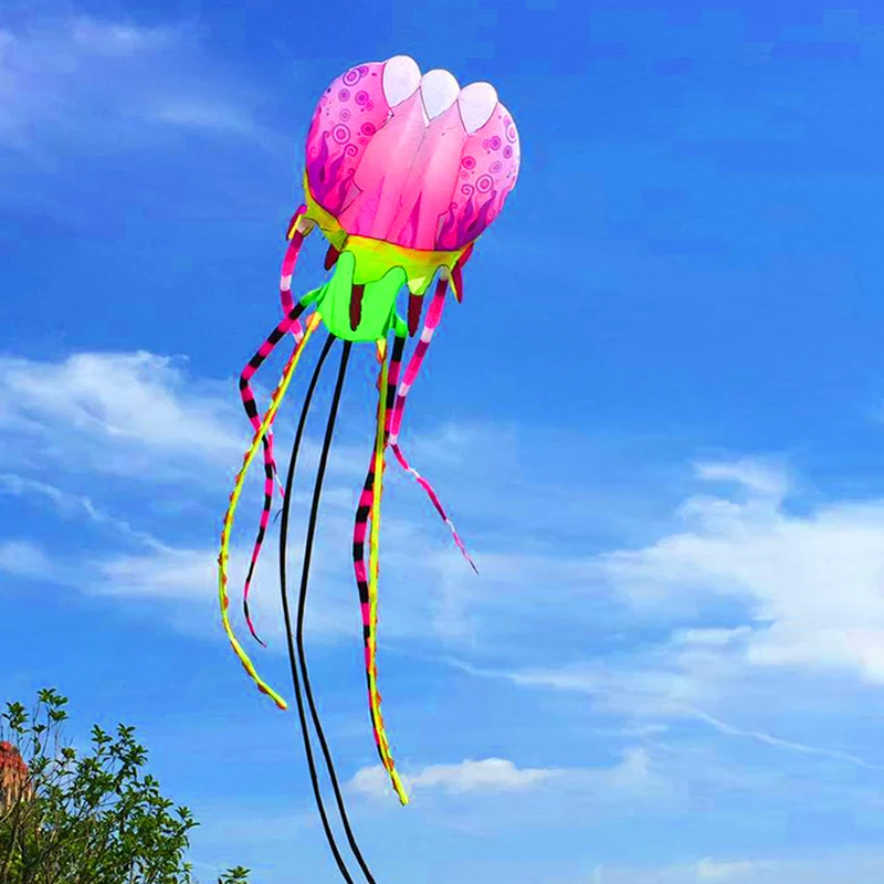 10m large soft kite flying jellyfish kite nylon ripstop outdoor toys kite reel line octopus kite pink windsock