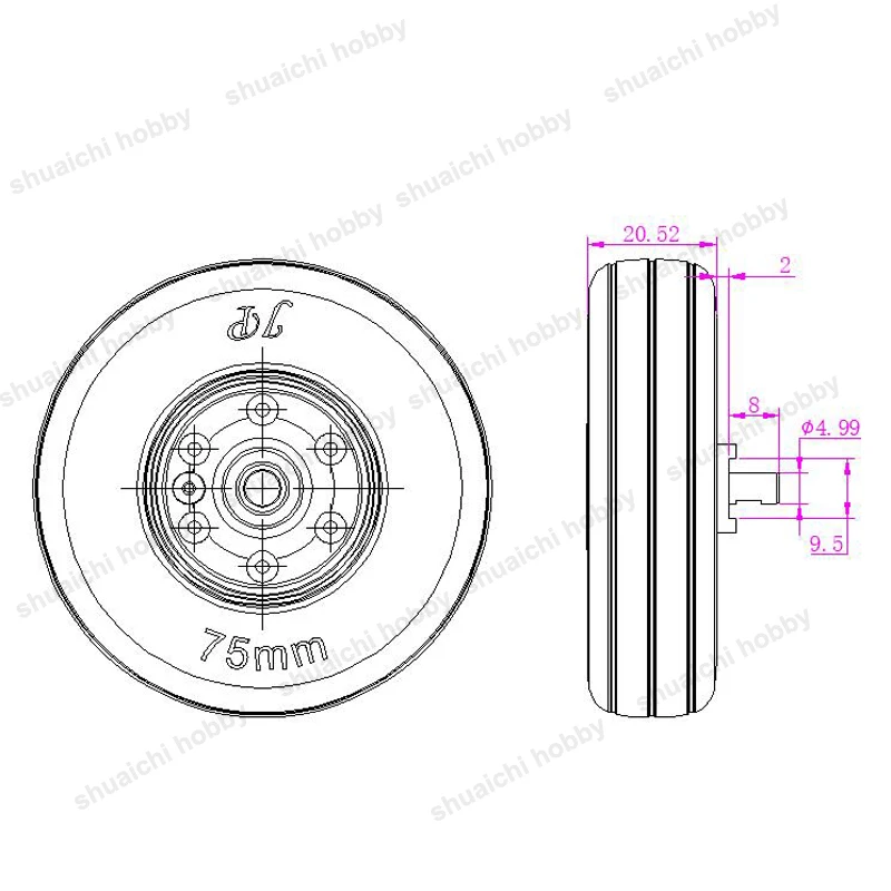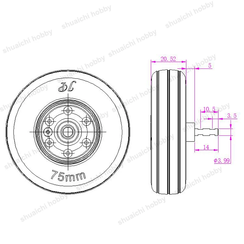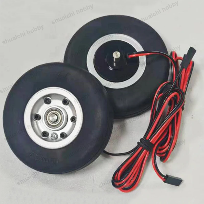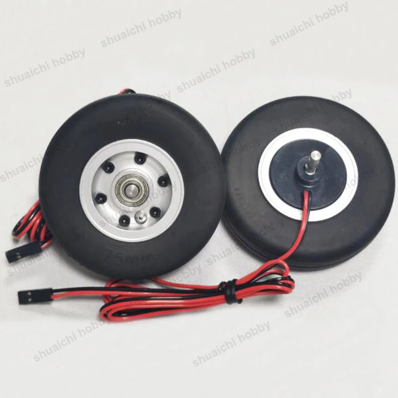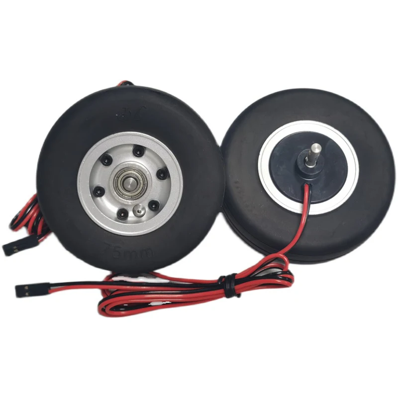 2pcs Model Lightweight 75mm Brake Wheel 75x4mm 75x5mm Tire with 2-6S Controller for RC Fixed-wing Aircraft Landing Gear
