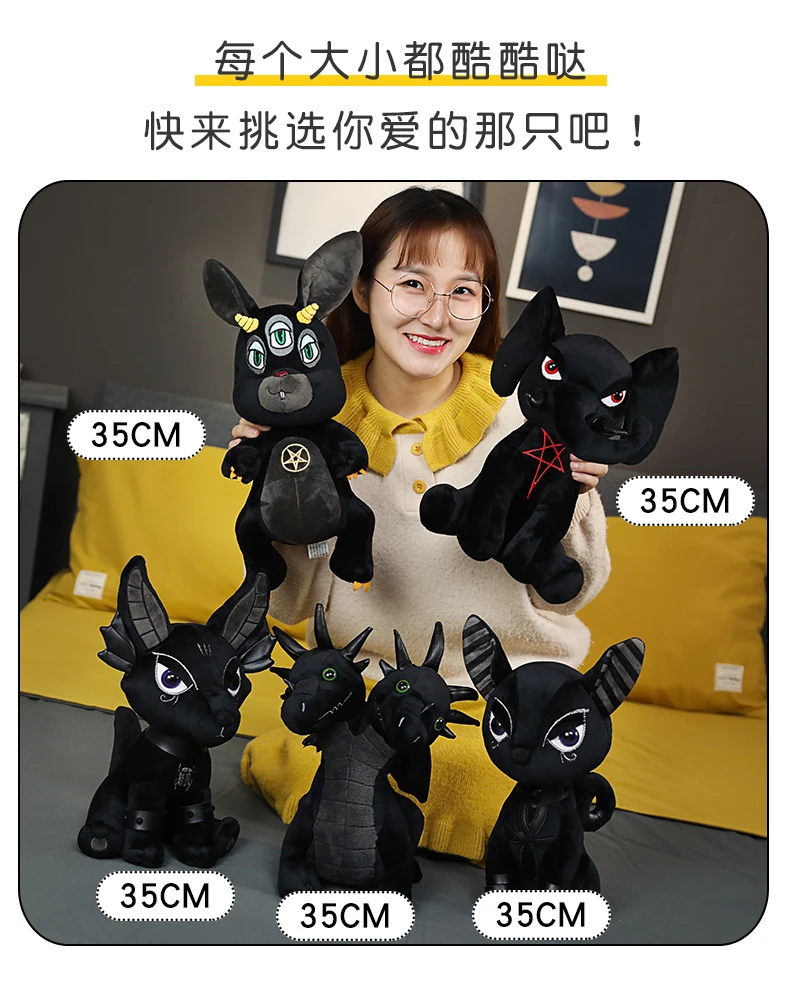 35cm 12Kinds Black Dark Evil Doll Plush Scary Pentacle Animals Anubis Hydra Unicorn Krampus King The Death Movie Figures Prop