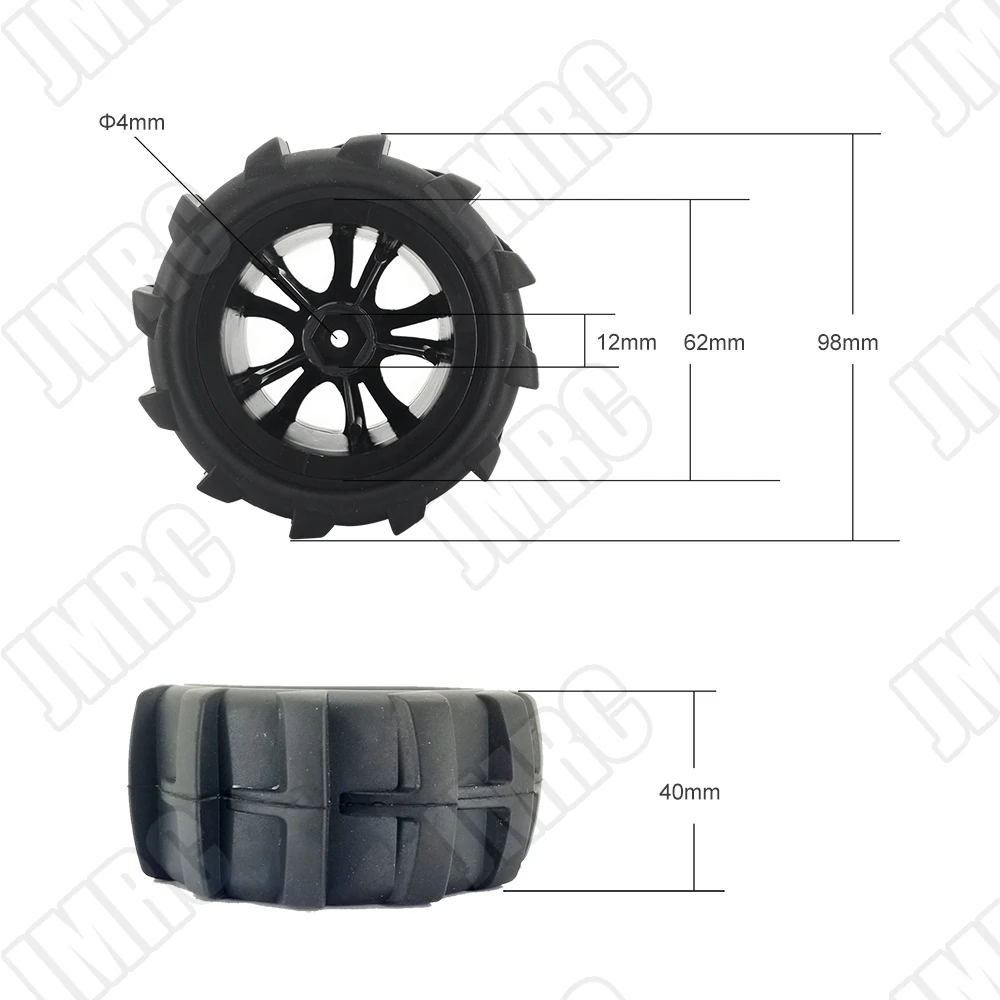 4PCS 1/12 Sand Wheel For 124016/124017/12428 Wltoys RC Buggy Truck Snow Desert Run Paddle Tires 62X98-40 Upgrade Parts