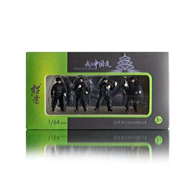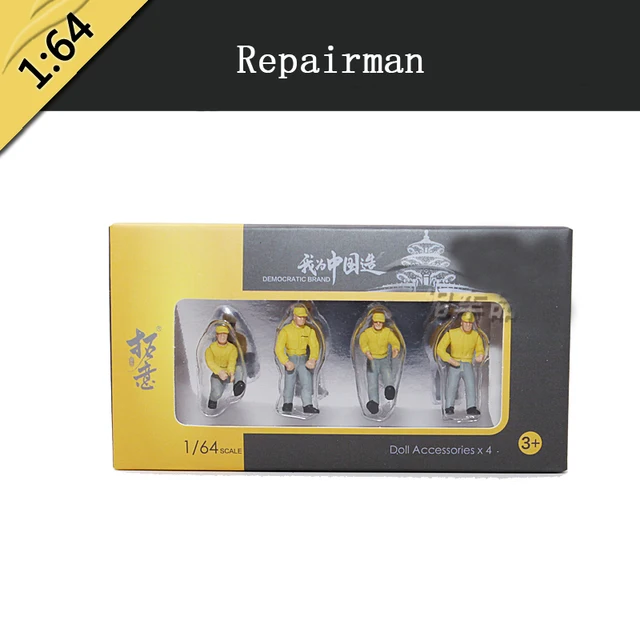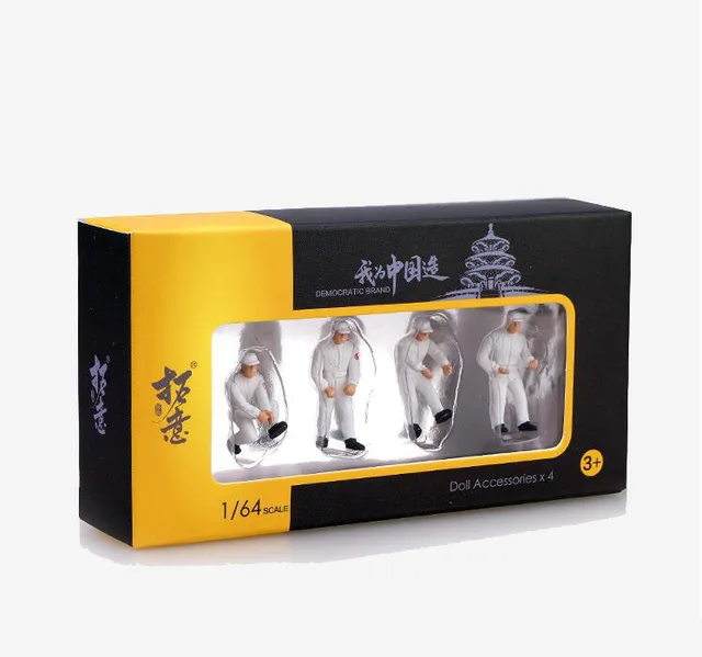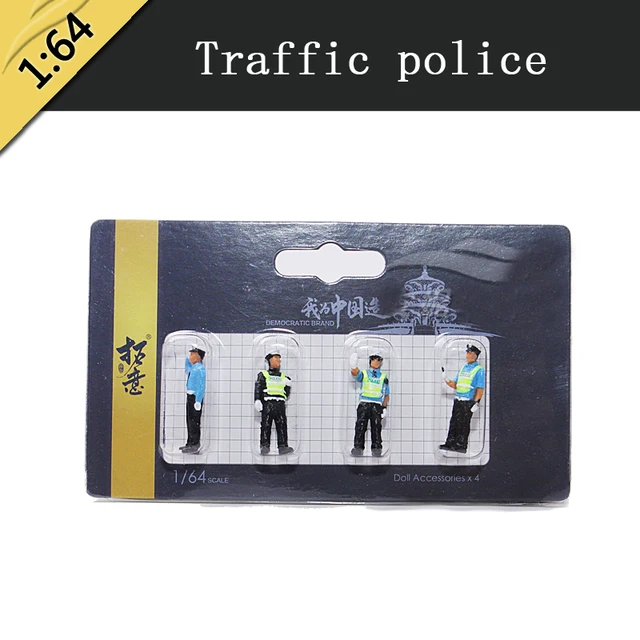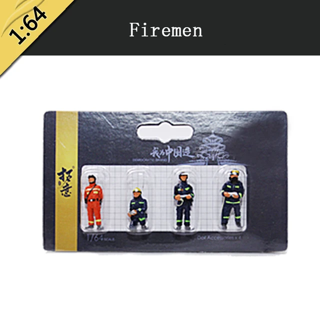 4pcs 1/64 Scale Car Model Doll Figure Traffic Police Fireman -proof Police Maintenance Worker Scene Simulation Parts