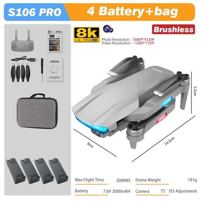 BABY DAIRY S106 GPS Drone 4K Professional Dual Camera WIFI FPV Dron Aerial Photography Brushless Motor Quadcopter RC Helicopter