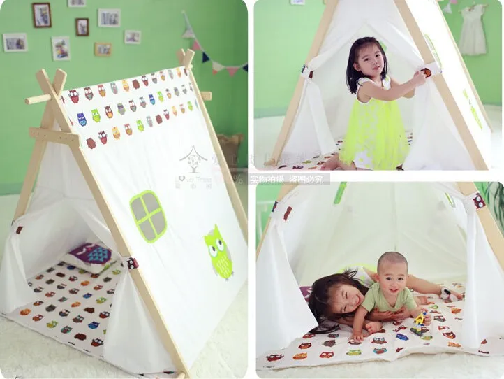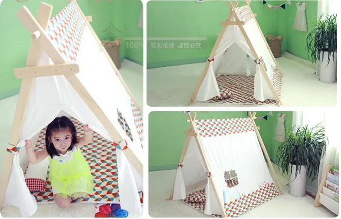Children teepee cotton canvas tent indoor baby toys play tent little game teepee house