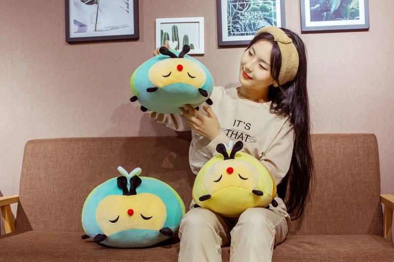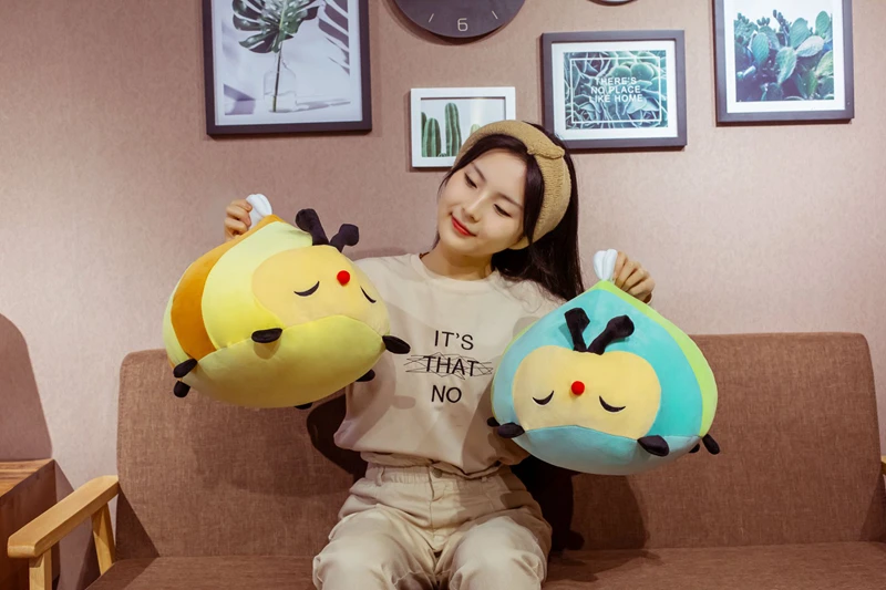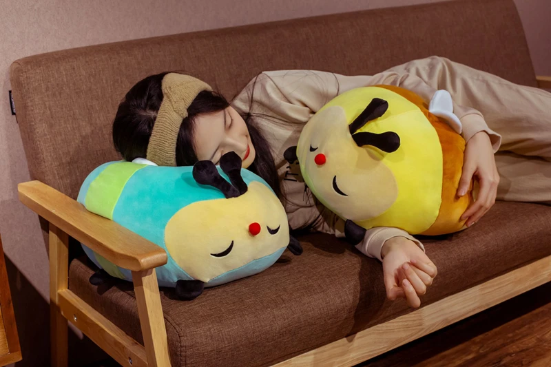 Cute Bee Ladybug Plush Toy Stuffed Doll Sleeping Cylindrical Pillow Soft Doll Sofa Decor Birthday Gift for Kids