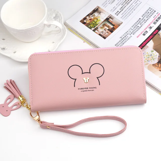 Disney Mickey mouse cute wallet lady long zipper tassel key coin purse student wallet Minnie card holder Clutch