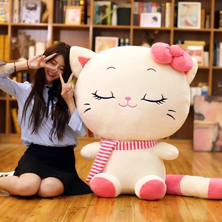 Dorimytrader Jumbo Lovely Soft Cartoon Cat Plush Pillow Cute Kitten Stuffed Dolls for Kids Gift 39inch 100cm DY60387
