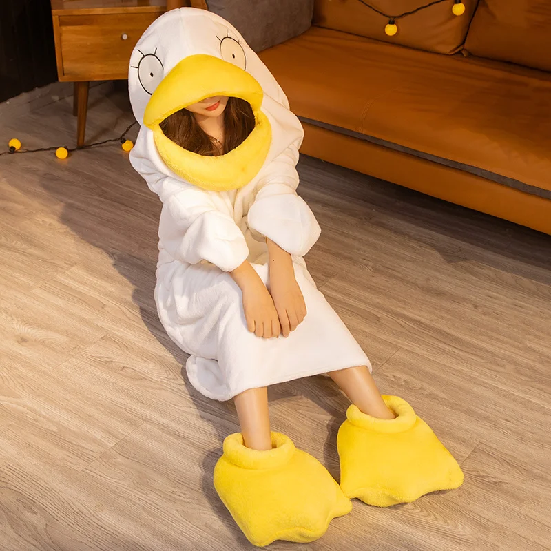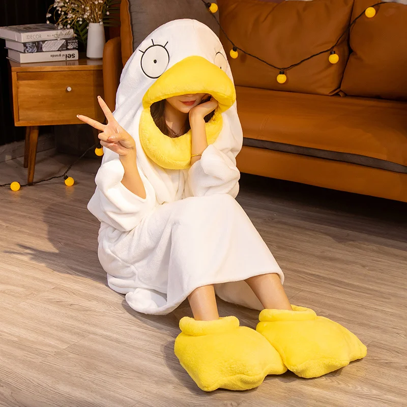Frightened Big Eyed Duck Sleeping Bag Plush Pajamas Duck Claw Shoes Thickened Flannel Plush Sleeping Bag Halloween Dress Up Gift