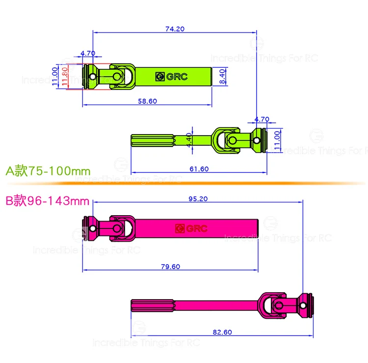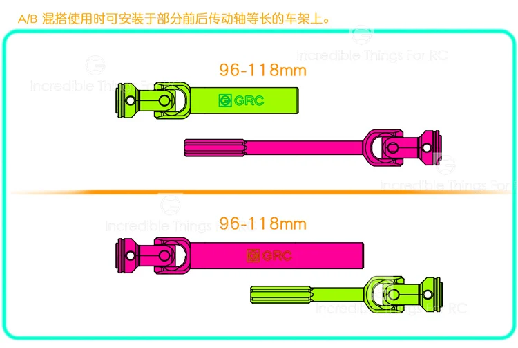 GRC for SCX10III TRX6 G63 TRX4 RC4WD CVD Second-generation Heavy-duty Drive Shaft Metal Universal Joint Accessories GAX0148A/B/C