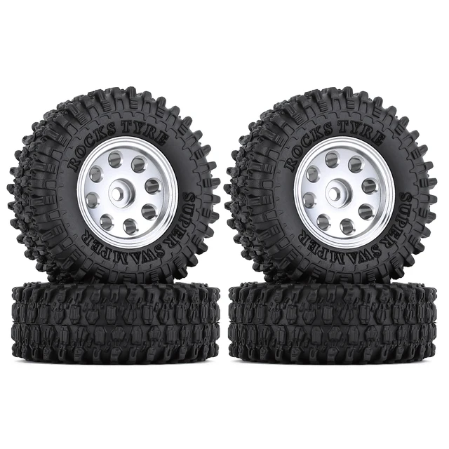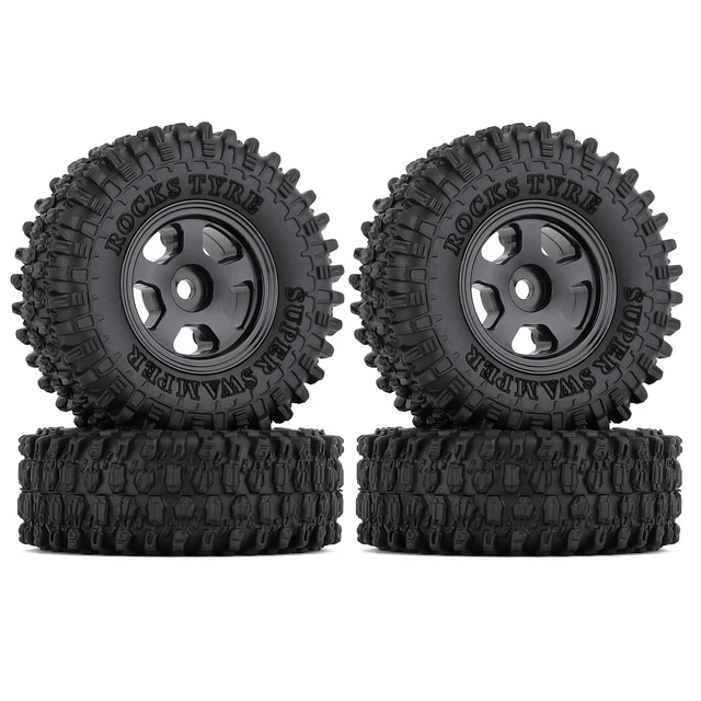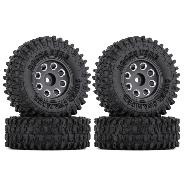 INJORA 4PCS 1.0" CNC Beadlock Micro Crawler Wheel Rims Tires Set for 1/24 RC Crawler Car Axial SCX24 90081 AXI00001 Deadbolt