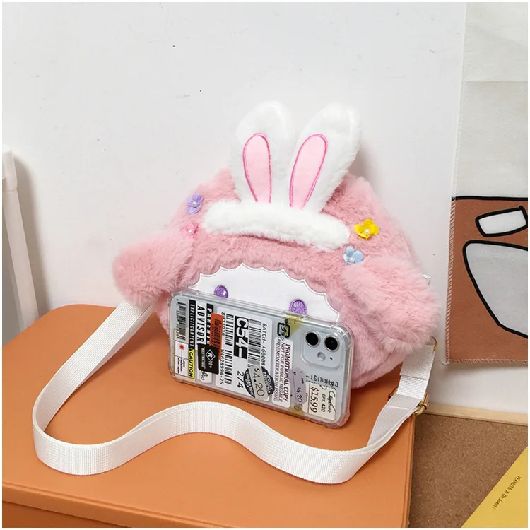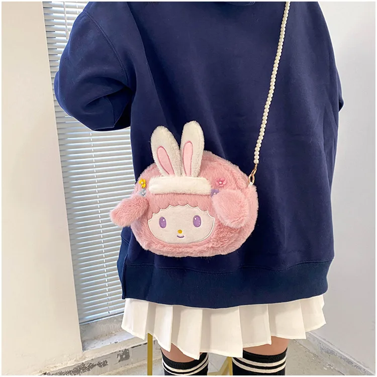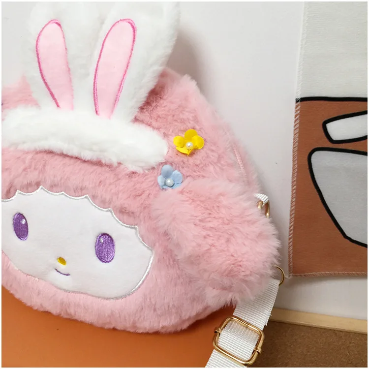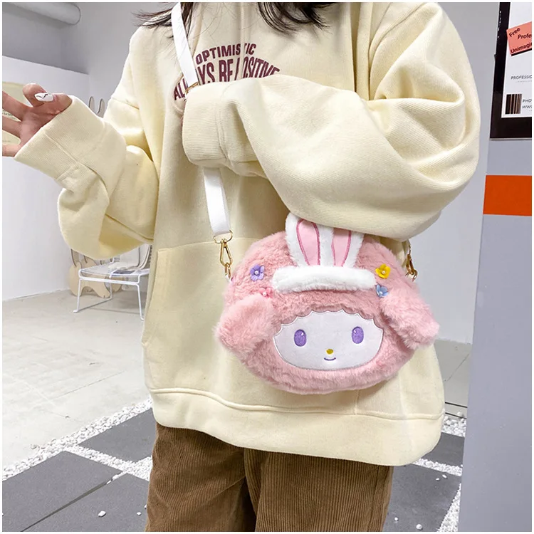 Kawaii Sanrios Plush Anime Cartoon My Melody Shoulder Bag Animal Plushie Messenger Bag Keys Coin Purse Handbag Birthday Gift Toy