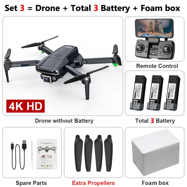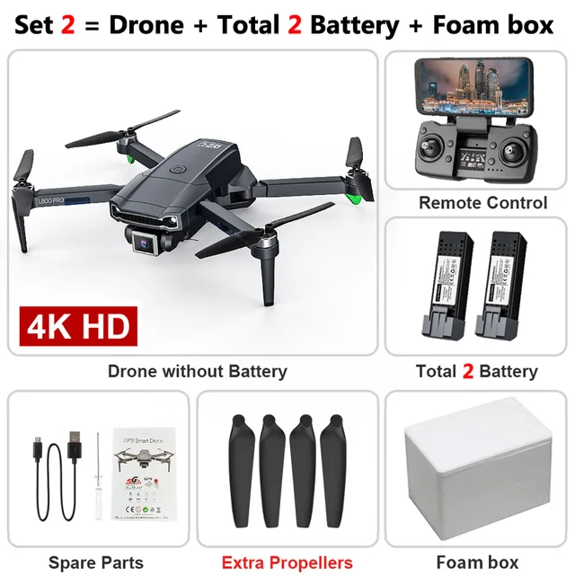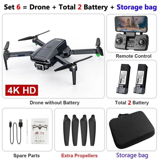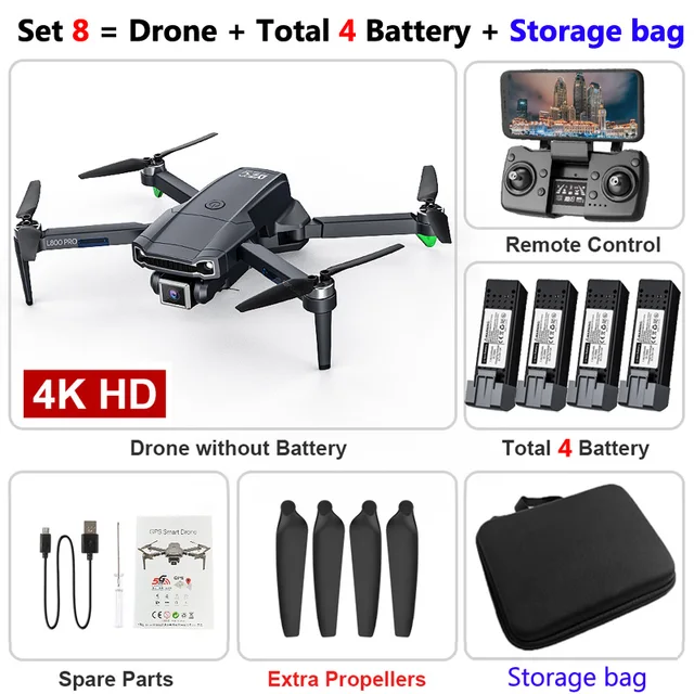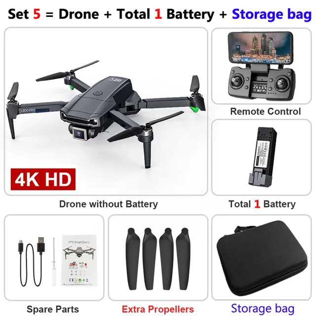 L800 Pro GPS Drone 4K 5G Wifi FPV Professional HD Dual Camera Brushless Aerial Photography Wifi Foldable Quadcopter VS SG907 MAX