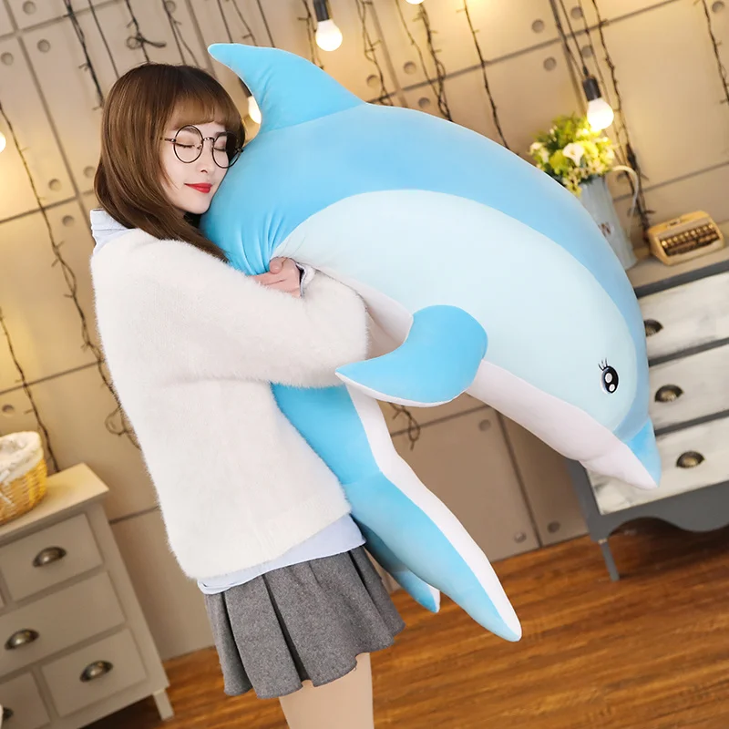 Lovely 100-140CM Large Size Cute Soft Dolphin Plush Toys Stuffed Sea Animal Whale For Kids Gift