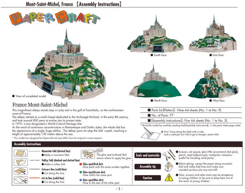Mont-Saint-Michel, France Craft Paper Model Architecture 3D DIY Education Toys Handmade Adult Puzzle Game