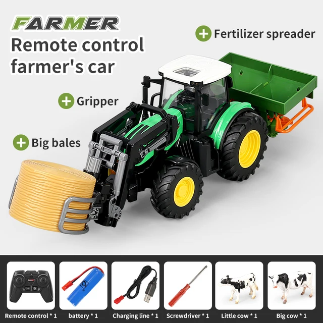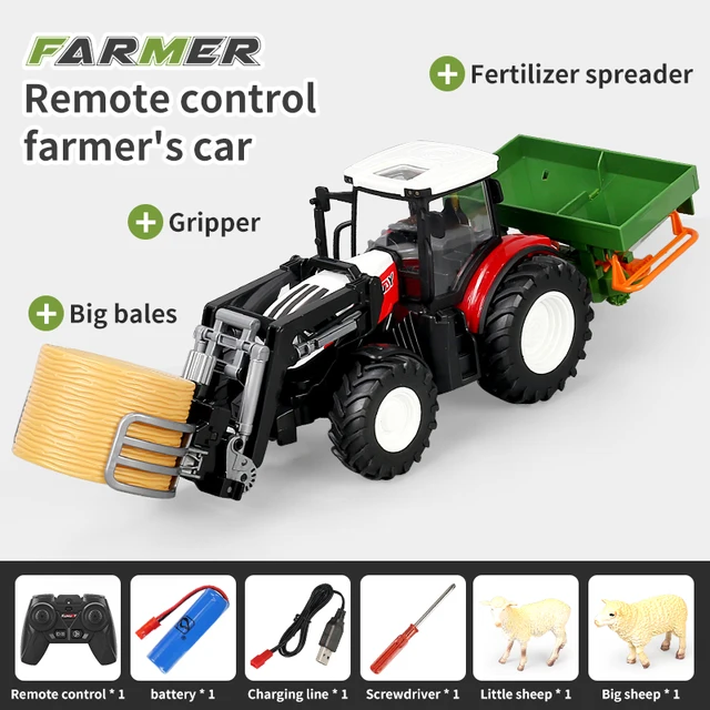 RC Farm Tractors Car Trailer 2.4G Radio Controlled Cars Farming Simulator Truck Miniature Farmer Animal Model Toys Children Boy